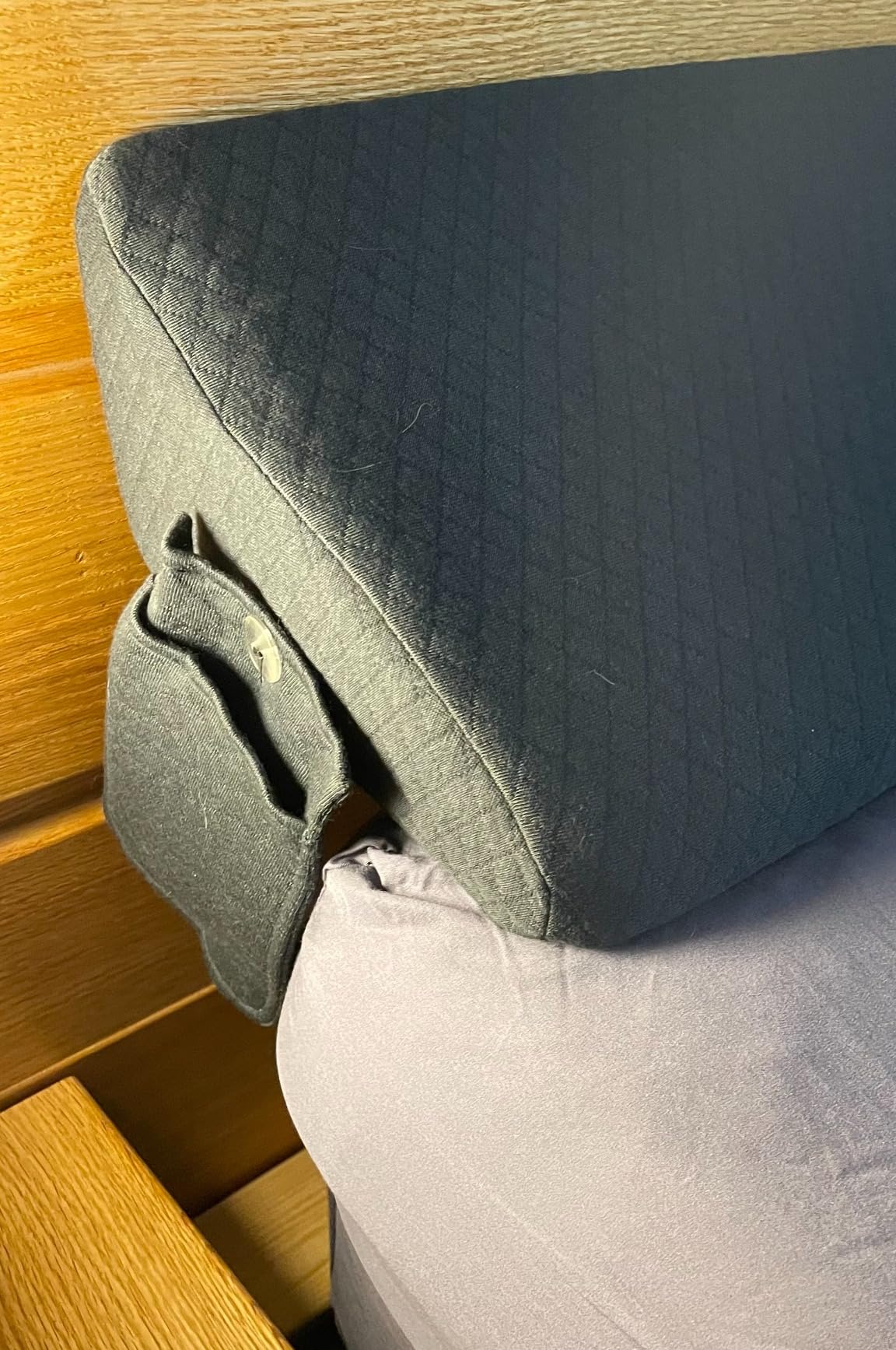 It fills the gap between your headboard and mattress, preventing pillows from slipping and providing extra support so you can sleep comfortably all night.